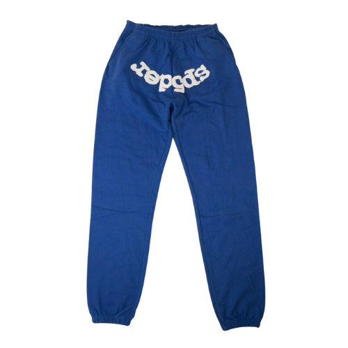 Sp5der Blue Websuit Sweatpants — sweatpants with bold graphics and streetwear fit.